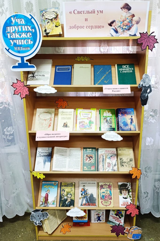 «Образ педагога в художественной литературе» — здесь представлены художественные произведения, где судьбы учителей и учеников переплетаются за школьным порогом. Эти истории показывают, что «уроки жизни» порой оказываются не менее важными, чем школьные предметы: А. П. Гайдар «Школа», Г. И. Полонский «Доживём до понедельника», В. Голявкин «Тетрадки под дождём» и многие другие.