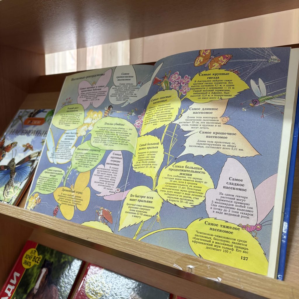 На экспозиции собраны красочные энциклопедии, которые расскажут про всех-всех-всех животных на свете: