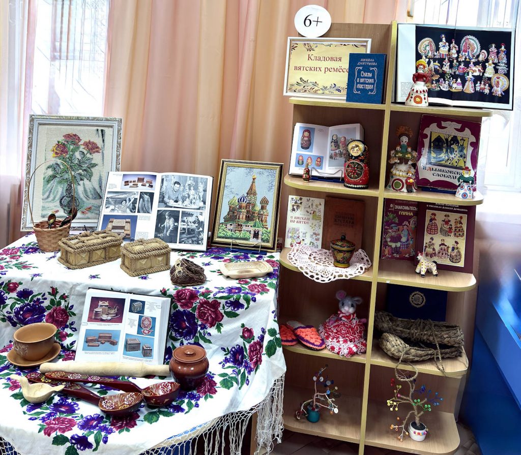 В рамках «Областных дней вятской книги» в Детской библиотеке оформлена экспозиция, объединяющая литературные издания и образцы народных промыслов.