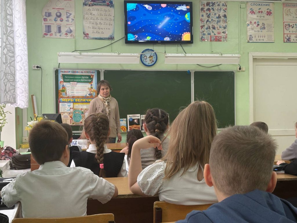 В преддверии Дня космонавтики библиотекарь Татьяна Решетникова провела для учащихся Лицея имени Г. С. Шпагина и воспитанников детского сада «Сказка» и «Рябинка» мероприятие.