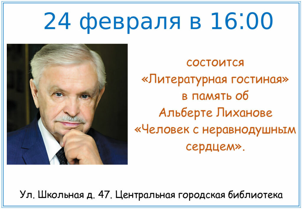 16:00: Литературная гостиная «Человек с неравнодушным сердцем»16:00: Литературная гостиная «Человек с неравнодушным сердцем» –